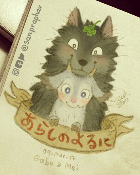 เรื่องน่าจะมีคนพูดถึงเยอะแล้ว ขอย้อนมาเรื่องนี้ดีกว่า เคยวาดไว้พอดีเลยค่ะ ^^(วาด Mar 2017, ลงสี May 2022) 🍀🐾 #あらしのよるに หรือ #StormyNight (ชื่อไทย #คู่ซี้ต่างพันธุ์ ) อนิเมปี 2005 เรื่องราวของแพะเมอิกับหมาป่ากาบุที่ไปหลบพายุในกระท่อมเดียวกัน (ต่อ) #sanpraphav #sketchbook twitter.com/sora_sketcher/…