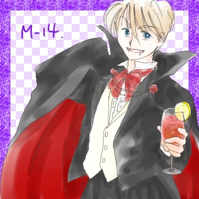 14.ドラキュラ伯爵 ほかに適任も居そうだったのですが #苑辺野文化部 二度目の瑞穂。 トマトジュースにはレモンが付いてるイメージです。 ん…? トマト好きなのが近くに居たな…🤔?? そういえば2020年のハロウィン絵で吸血鬼コスしてましたね😊 舞台衣装得意系。 #ありがちコスプレ40