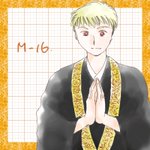 16.お坊さん #おちゃわくらぶ 山峰 雰哉(きりや)。 白鳳高校(茶道部の学校)購買部に商品を運ぶバイトをしてる優しいお兄さん。 バンドやっててキーボードと作曲担当。 声が出せないので筆談や手話で話します。 金髪だけど法衣似合うな…😊 #ありがちコスプレ40