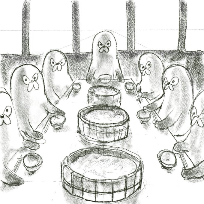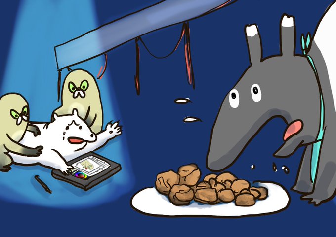 今年は描き上げるまで離さないムジーナと、パーティーで出された唐揚げを食べ尽くすバクです。 #ムジーナ #おうちゃくま #くまみね #6月27日はムジーナの日 #ムジーナは流行る #ありがとうくまみね先生 #バクも今日が誕生日 twitter.com/honen1954/stat…