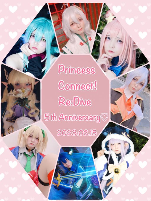 ⚠コスプレ 5周年おめでとう~~!!!前作からの長い付き合いになりました……🥹どのキャラも個性的で魅力的で大好きだ~😭これからも続いてくださいいつもありがとう😭😭💗もっとコスプレしたい~!! #ありがとうプリコネ #プリコネR5周年