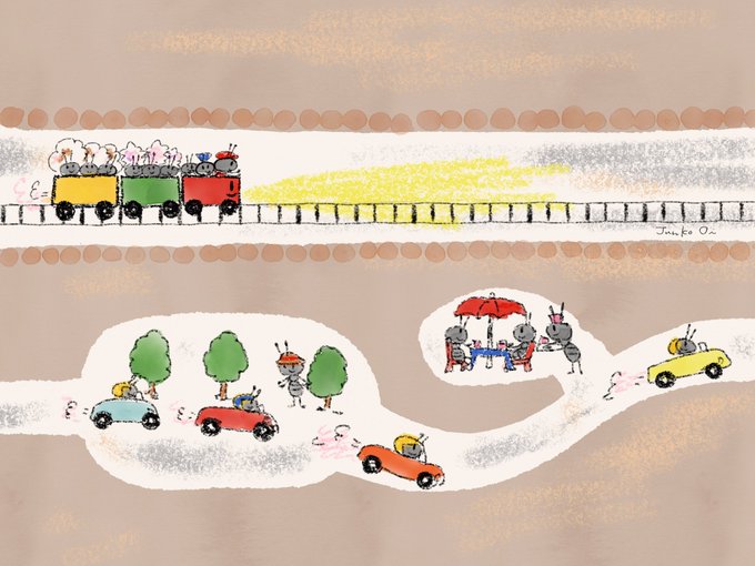 ありんこトロッコ ごとごとごと #イラスト好きさんと繋がりたい #イラスト #illustration #絵本 #ありんこトロッコ 『ありんこトロッコ』アリス館から3月末 出版予定です 宜しくお願いします これはデジタルのイラストですが 絵本はアナログ原画になります 水彩とクレヨンと色鉛筆です