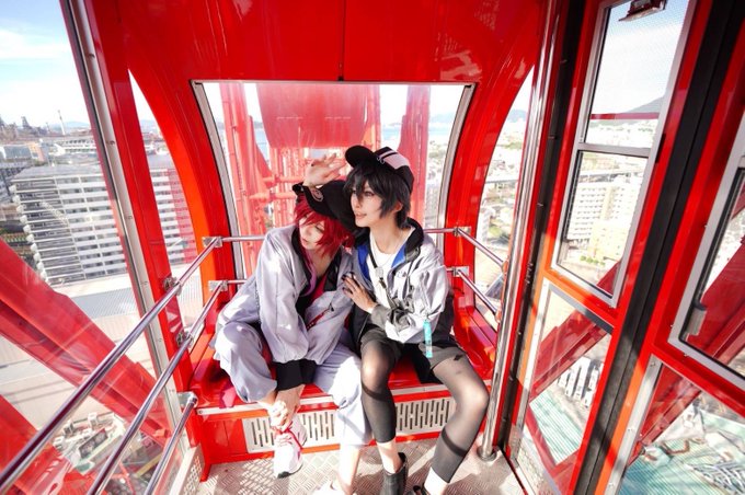 🌈🕒 🗝 💸 スロアニバ衣装✨ 「みてみてーめっちゃ景色いいーー!!!」 「マッズ!!!」(腰引き気味) 🐈⬛ @harushiki23 p.@ankn_sw20 #あるコスinチャチャタウン