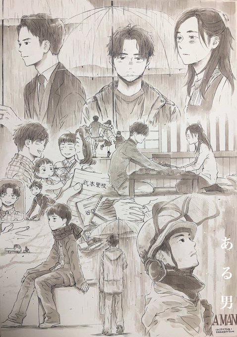 観た後余韻がずっと続く作品。 静かに降る雨のように心の奥にしみてくる。 (劇中の好きなシーンの一部を描いてみた。映画ある男は、雨のシーンが心情をも表していた気がする。雨が上がり地面にある水たまりに店が映り込のも好き) #ある男 #愛したはずの夫はまったくの別人でした