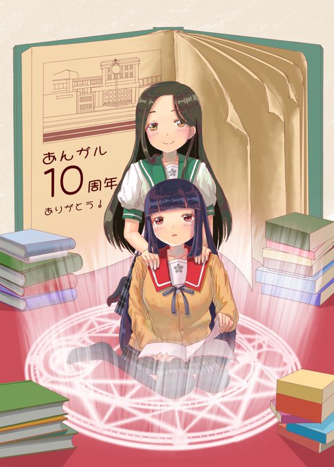 #あんガル10周年 おめでとうございます! あんガルで一番好きだったまりあちゃんと、癒しをくれた保健委員のみんなを描きました。元気に登校できたのも彼女達のおかげですね!ハレルヤ🎶 この絵は公式企画に出したものの回転版です #あんガルファンアート …あれ、昨日も同じようなことを言ったような