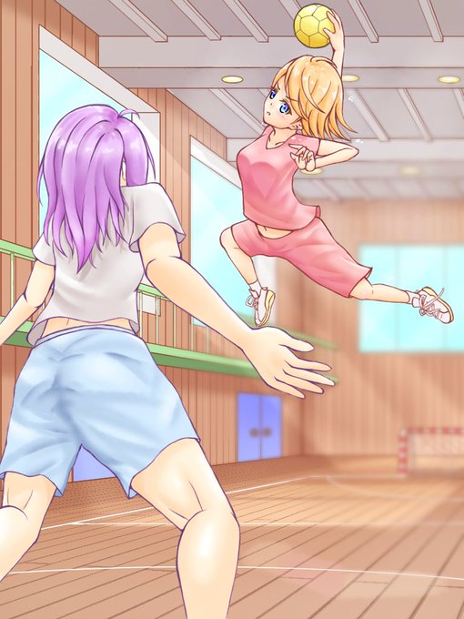 前に描いたやつ投稿し忘れてたから上げます! ハンドボールです🤾 体育館描くの大変だったよ…😂 #イラスト #絵描きさんフォロバ100 #絵描きさんと繋がりたい #いいねかRTで気になった人をフォローする