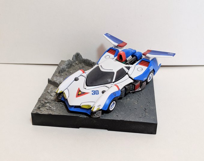 プラモ改造トランスフォーマーアスラーダGSX、完成しました。なんとか差し替え余剰無しで変形します(; ・`ω・´)b デザインとか変形パターンは初代トランスフォーマーをイメージ #サイバーフォーミュラ/#アスラーダ/#プラモデル/#トランスフォーマー/#いいねしたアイドル全員フォローする/#リツイート
