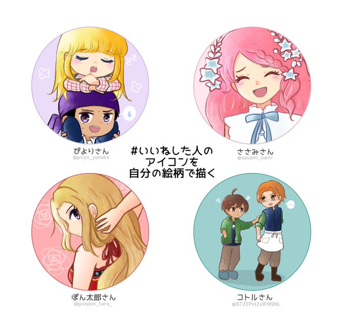 #いいねした人のアイコンを自分の絵柄で描く 3ヶ月かかりましたが、19名、21枚分のアイコンを描かせていただきました✨ 皆さんのアイコンから学べることは想像以上に多く、色々な面で成長することが出来ました!いいねしていただいた皆様、本当にありがとうございました🙏💕