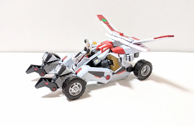 境界戦機の新型機ケンブァーシュTypeZERO、出来ました。ビークルモードに完全変形しますよ( ・`ω・´)b ビークルのウイングはボードにもなりますよ。 #境界戦機/#メイレスケンブ/#トランスフォーマー/#変形/#プラモデル/#いいねした全員フォローする/#リツイートした人全員フォロー/#エウレカセブン