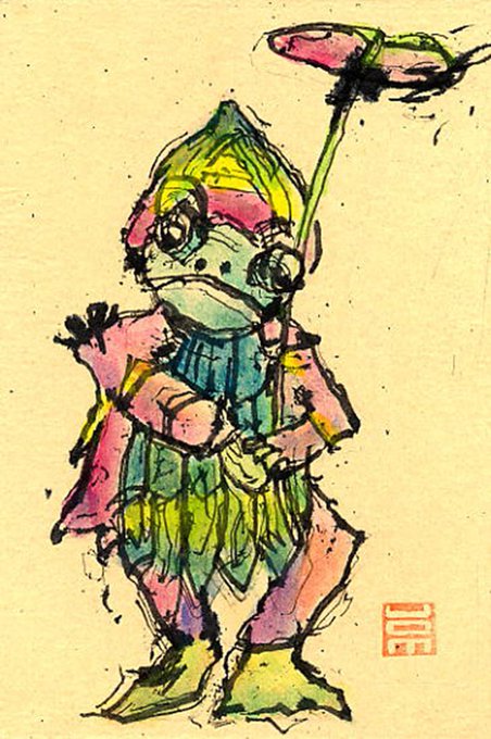 ミず鬼ずム百景17 「カエルの置物」(墨絵) おはようございます 良い一日になりますよう🌈 #いいねで気になった人フォローする #アナログ画 #アナログ #拡散希望 #妖怪 #水木しげる #秋の創作クラスタフォロー祭り #芸術同盟 #絵描きさんと繋がりたい #イラスト好きな人と繋がりたい #フォローRT