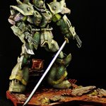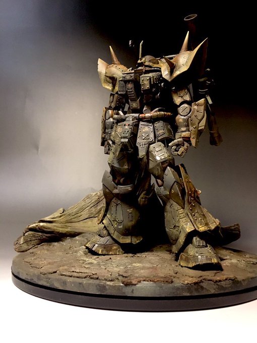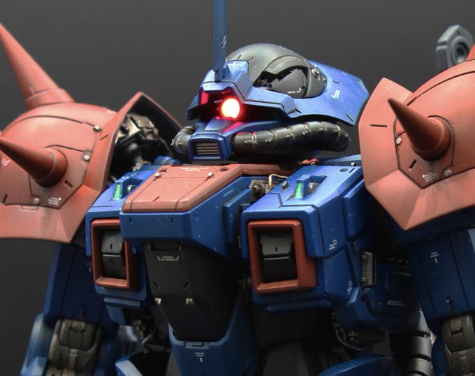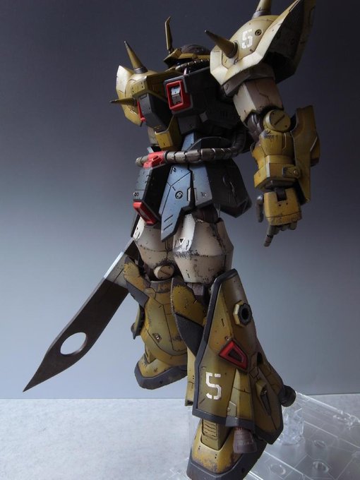 #いいイフリートの日 良いタグがあったので便乗。HGUCイフリートです。スパイクを尖らせた他は無改造です。成型色を生かしてウェザリングしました。#ガンプラ #ガンプラの画像を貼るとRTされると聞いて