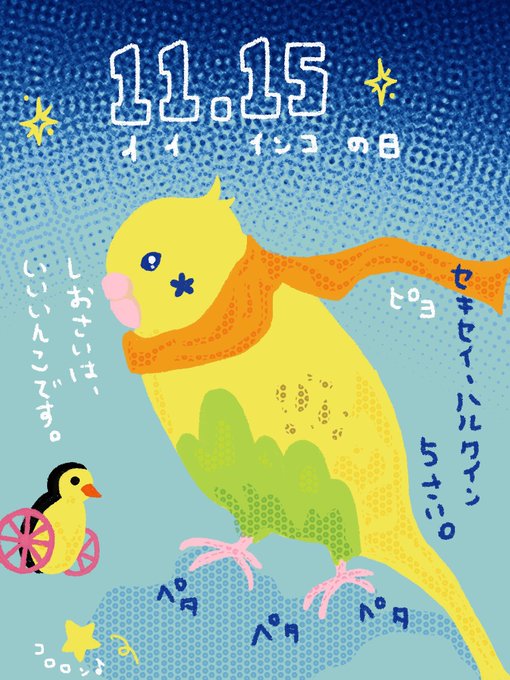 #illustration #イラスト #いいインコの日 久しぶりに描きました。これからもよろしくお願いします。 オカメインコをめぐって、女の子たちのバトルが始まっています。でも、何をしても可愛いのがインコちゃん。眠りのヒヨコちゃん🐤良いインコの日のインコの一文字を、何かと間違えています💩