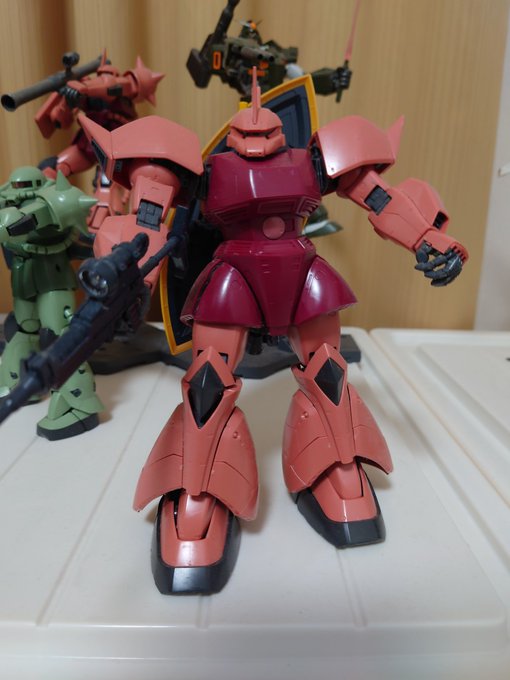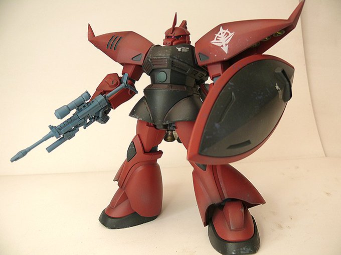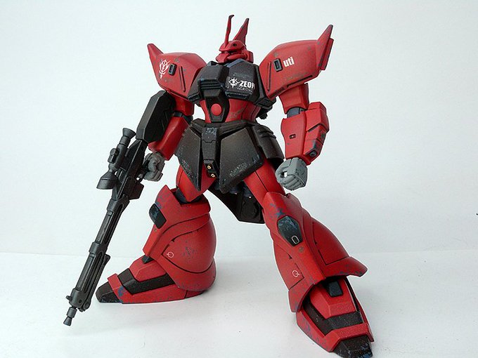 #いいゲルググの日、これはもう何でもありの気もしますが、せっかくなので以前に遊びでガンダムマーカーエアブラシで塗装したゲルググで乗っかります。ガトー専用っぽいゲルググ。 #ガンプラ #ガンプラ好きな人と繋がりたい