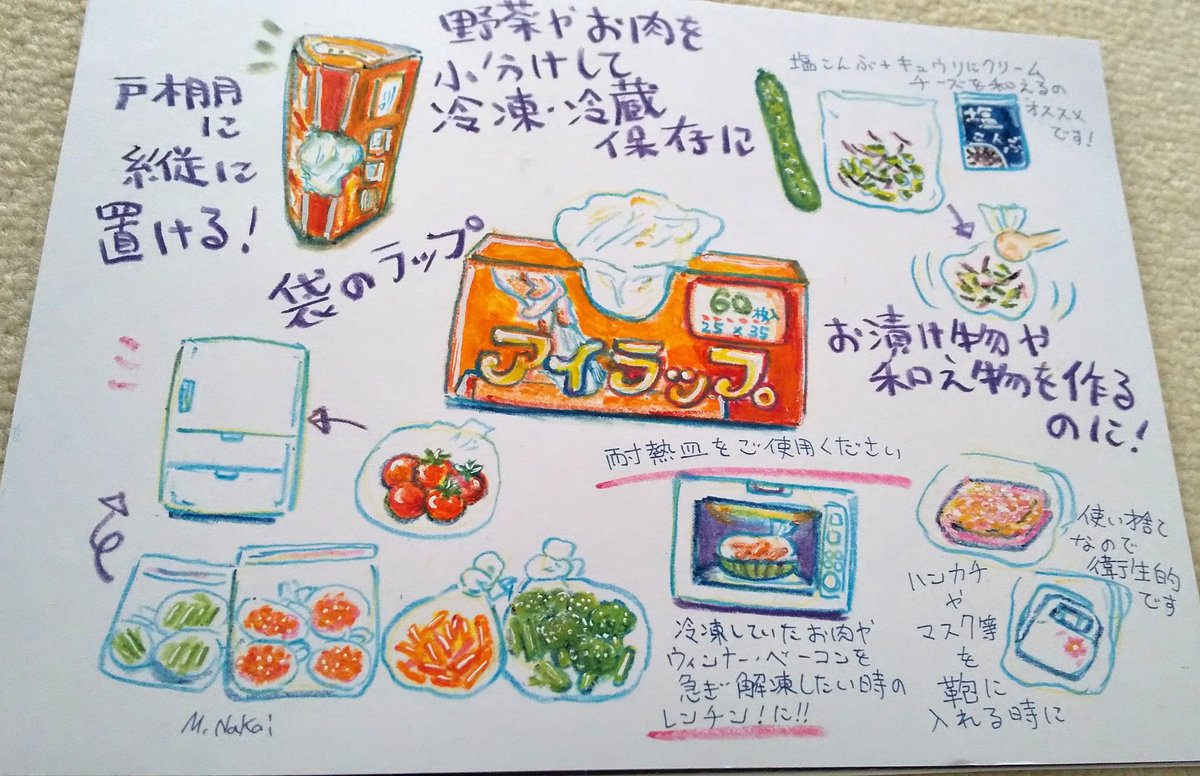 #いいブロッコリーの日 でもあったんですね~この時期、地元の朝市で買ったブロッコリーは良く洗ってから上の部分はシチューやサラダの飾り用にアイラップでレンチン!茎の部分を細切りにしてアイラップでレンチン→塩こうじと胡麻油でナムルにしています!茎も美味しいですよ~ #アナログイラスト