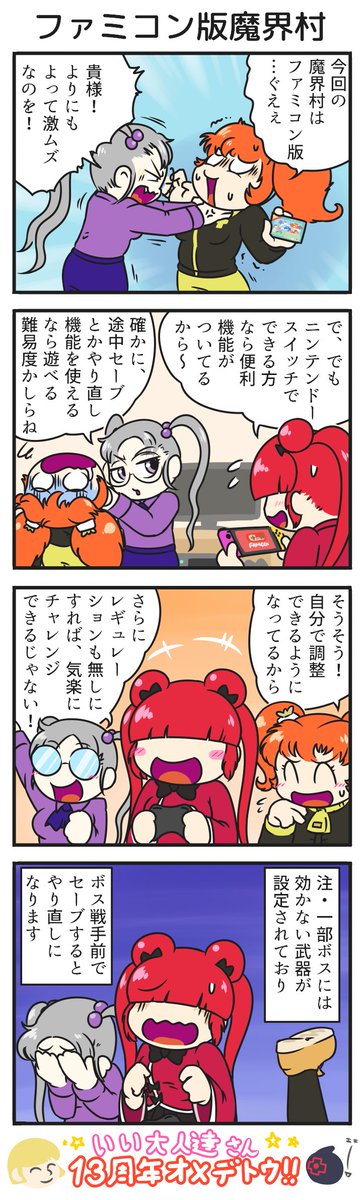 いい大人達さんFC版魔界村に挑戦中 ですが、13周年おめでとうございます‼️🎊✨ 「難しすぎて遊べない!」という方も スイッチ版なら、お助け機能がついてるから 気楽に遊べますよ~🎵...ただし #いい大人達13周年 #いい大人達の絵 #いい大人達