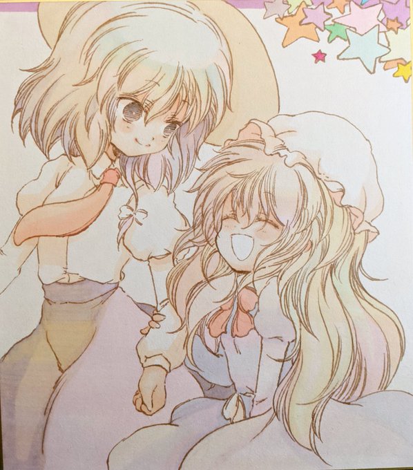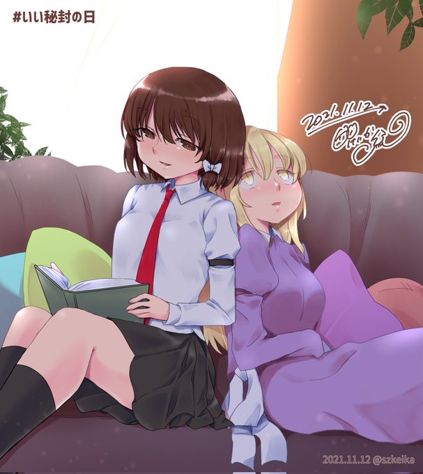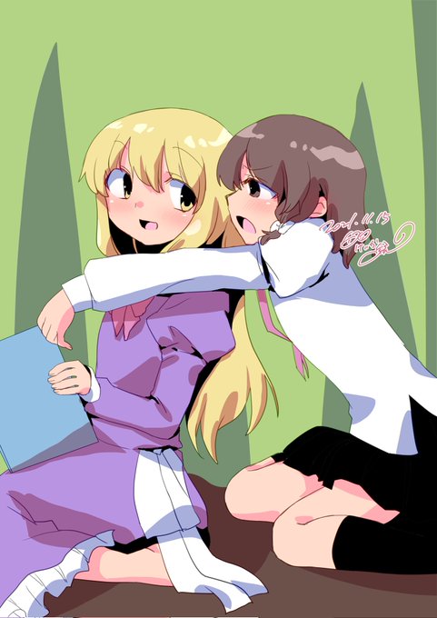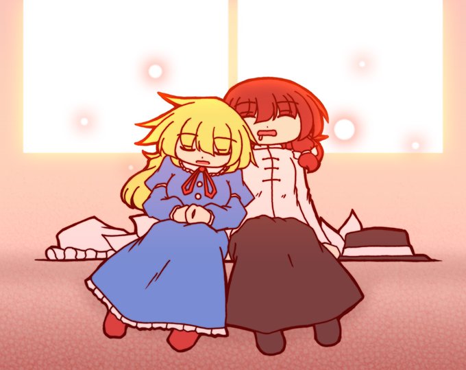 活動を終えた帰り道での電車内、疲れからかお互い体を預け合いながら居眠りしてる蓮子とメリーを偶然にも見守ってみたい、そんな事はありませんか? #11月12日はいい秘封の日 #いい秘封の日 #秘封倶楽部
