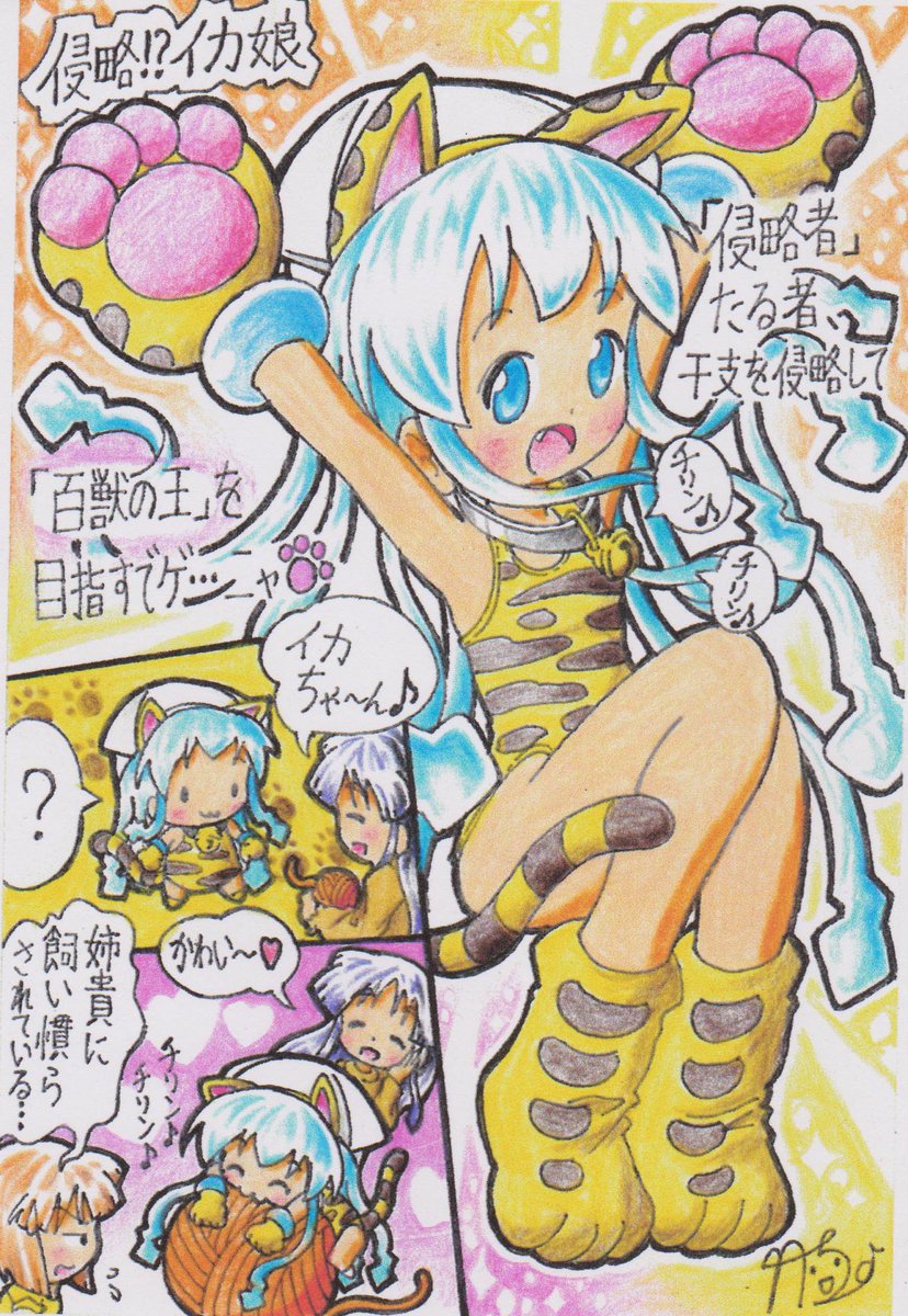 ただいまでゲソ!('ω')ノ 障害者就労事業所のお仕事から、帰宅しましたー。 #いい肉球の日 #ikamusume #イカ娘 #絵描きさんと繋がりたい #私の絵柄が性癖に刺さる人に届いてほしい