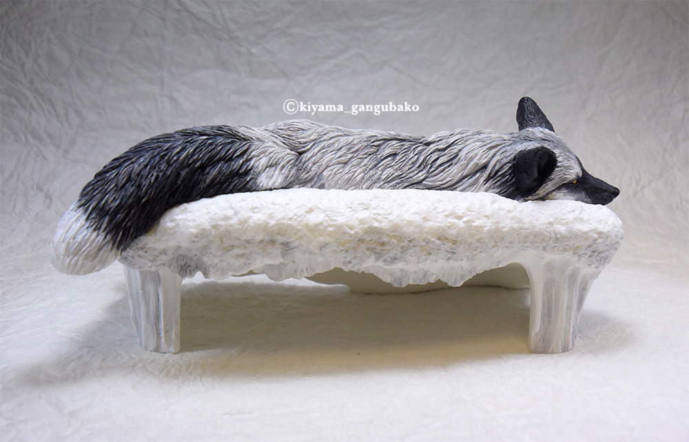 いえもにあ用に深雪狐の銀狐バージョンを作ってみました!キツネ界のシャム猫感あります。今回、通販はちょっと遅れて11日のスタートですのでご注意下さいませ~ #いえもにあ2 #いきもにあ2021