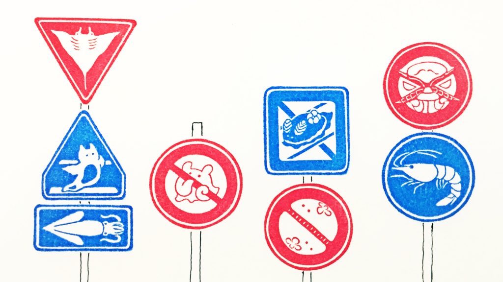 #いきもにあ2022 でも好評の郵便枠はんこ🐙そのまま捺しても可愛いのですが 海の交通標識と組み合わせると無地の封筒が一気におしゃれになります👌 ぜひお試しください❣️ #いきもにあお品書き #いきもにあ