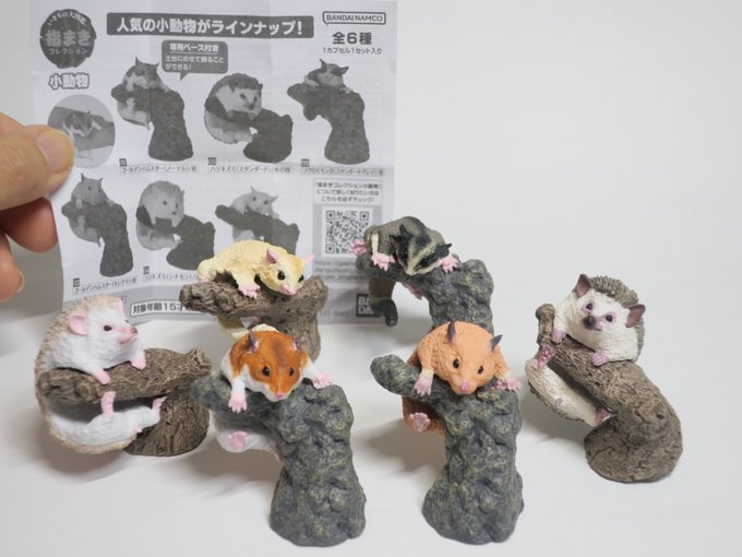 バンダイ様 @Gashapon_Bandai から発売の「いきもの大図鑑 指まきコレクション 小動物」の原型を製作しました。 ゴールデンハムスターとハリネズミ、フクロモモンガと言うラインナップ。 土台付きなので、ディスプレイフィギュアとしてもお楽しみいただけます。 #いきもの大図鑑 #指まきコレクション