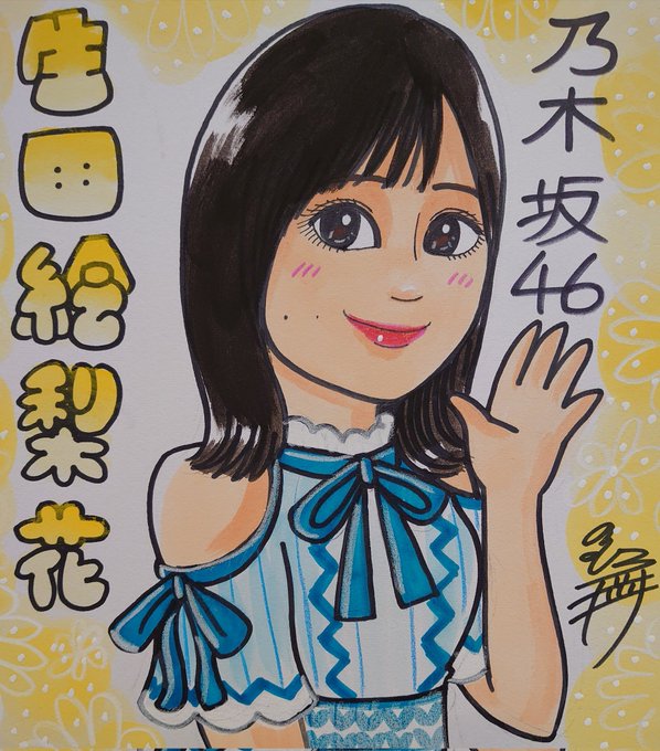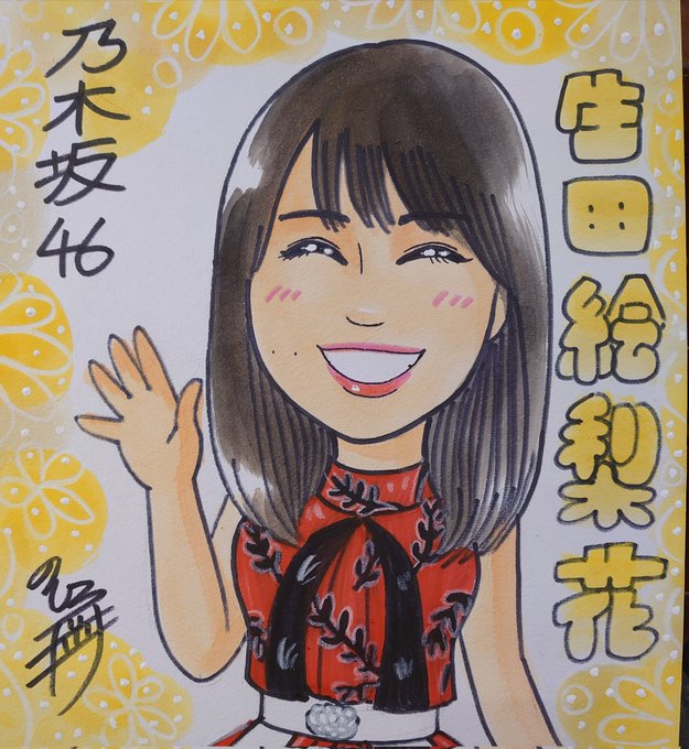 ドン! 今日描いた乃木坂ちゃんで〜す(*^^*) いくちゃん\(^o^)/💛 #似顔絵 #乃木坂46 #生田絵梨花 #いくちゃん #インターミッション #乃木坂46好きな人と繋がりたい #乃木坂イラスト