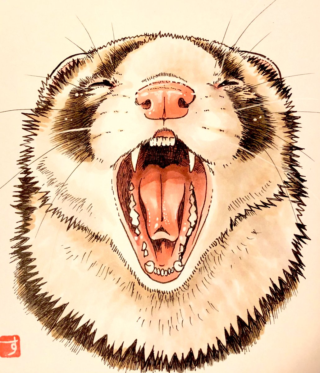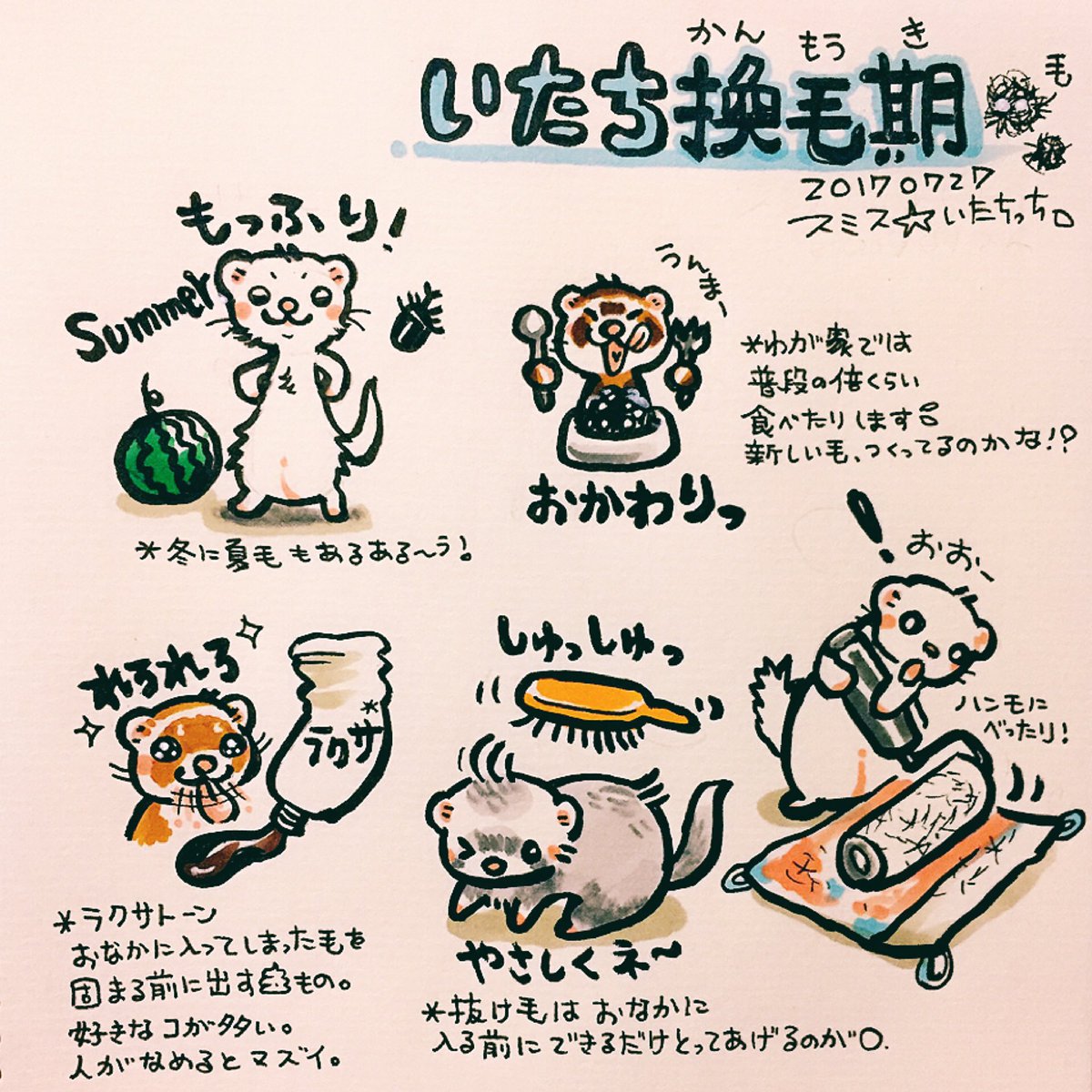 ※だんご三兄弟のメロディで 季節外れのかんもぅ(換毛♪) 夏に冬毛へかんもぅ(換毛♪) 食欲増してかんもぅ(換毛♪) いたち換毛期♪ ケッケしたならラクサ(ラクサ♪) 抜け毛すごけりゃブラシ(ブラシ♪) コロコロ消費倍増(倍増♪) いたち換毛期♪ #いたちっち。 #フェレットくらしの手帳