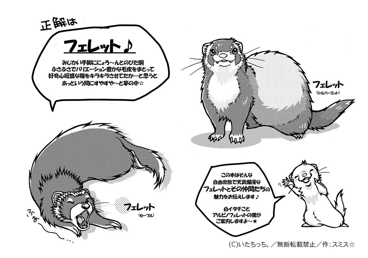 【フェレットはいたちか!①】 「#フェレット ってどんな動物か知っていますか?」 フェレットに魅了されたあるお絵描き人の 独断と偏見による タメになるようなならないようなフェレット漫画🐾 Twitter連載スタートφ( ̄▽ ̄ ) #いたちっちのフェレット漫画 #いたちっち。 #漫画が読めるハッシュタグ