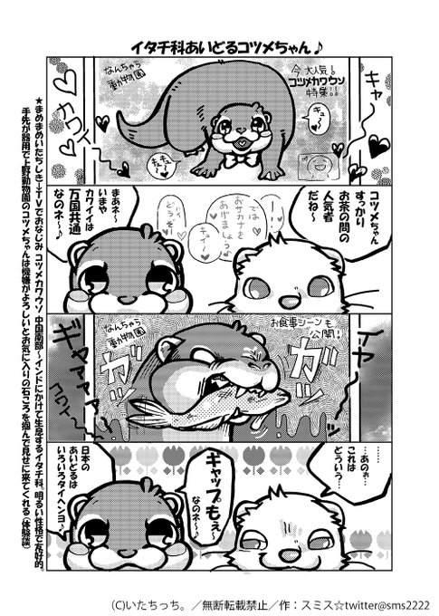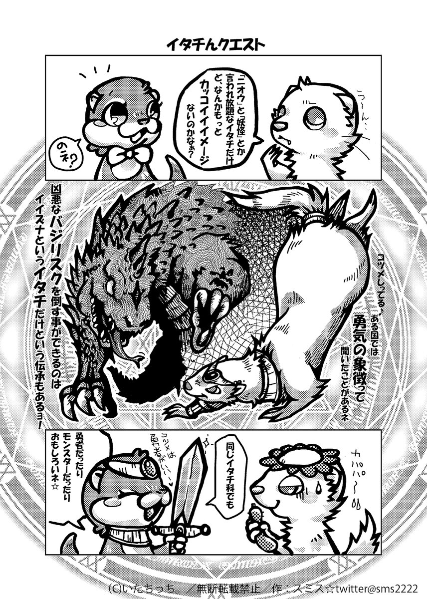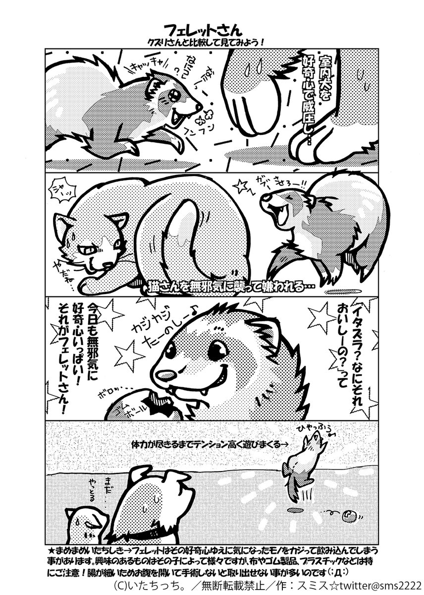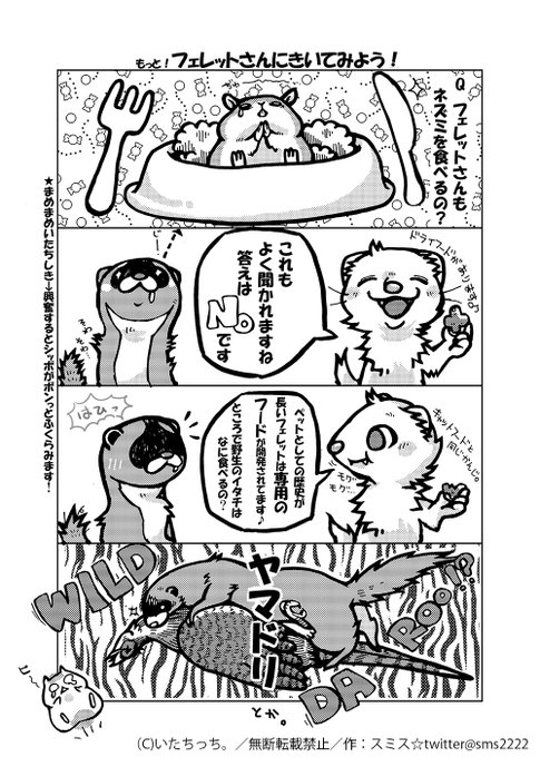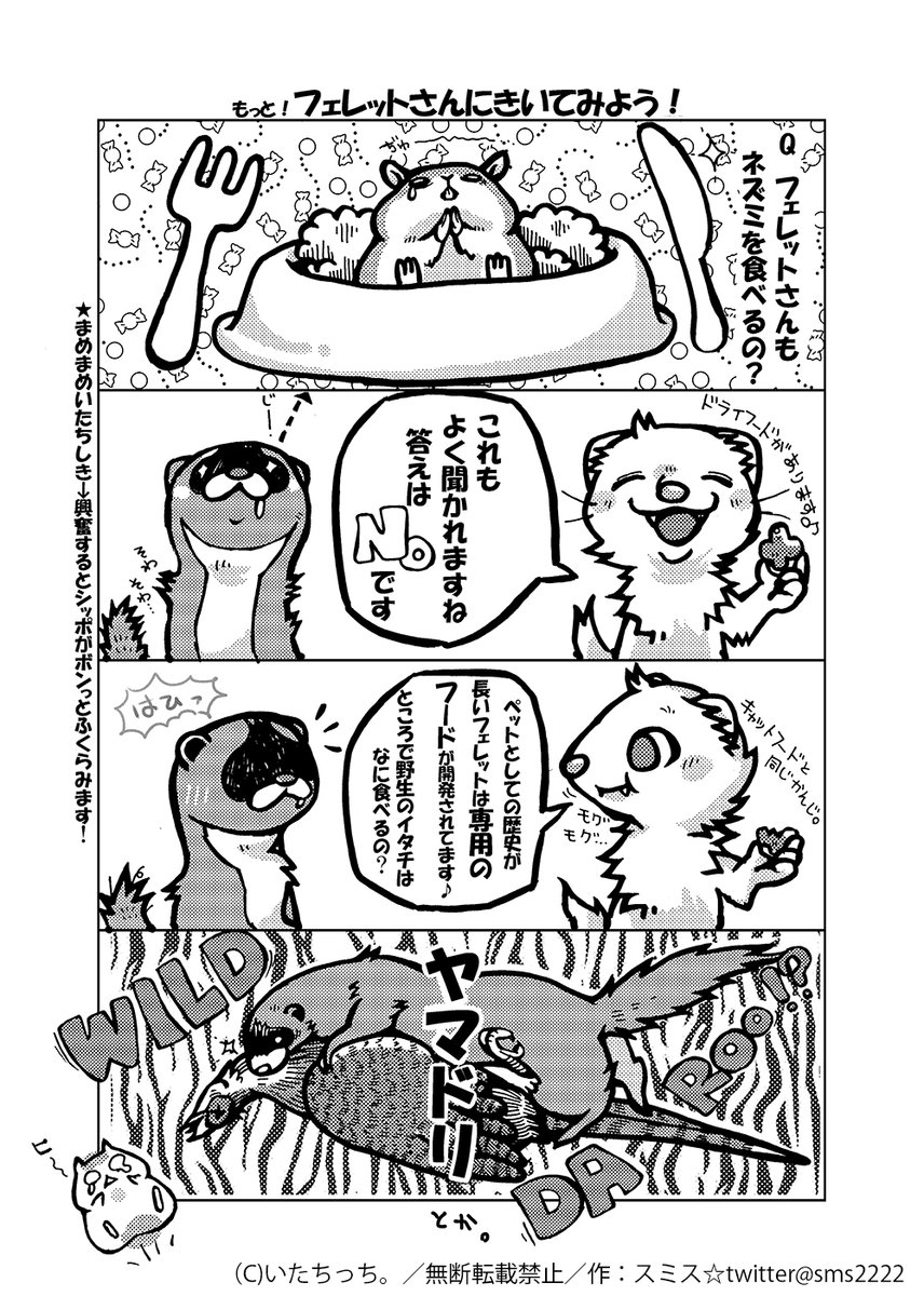 【フェレット は いたちか!⑧】 哺乳類最強のイタチ科「クズリ」🐾 大きなクマにも怯まず挑んだり オオカミを追いかけ回して咬みついたり なんて恐ろしい… ってあれ? コレってフェレットに似てない⁉️ #フェレット #クズリ #いたちっちのフェレット漫画 #いたちっち。 #漫画が読めるハッシュタグ twitter.com/sms2222/status…