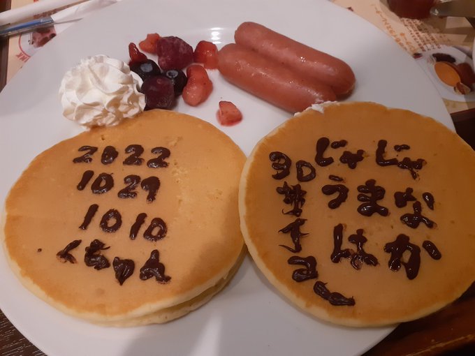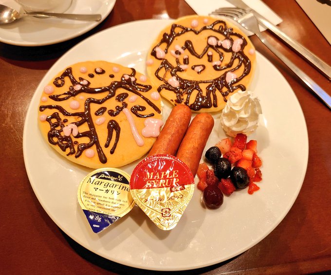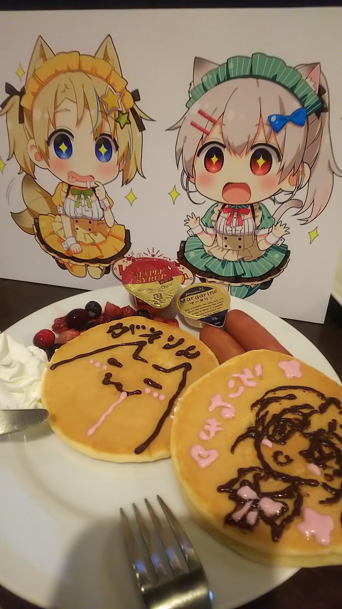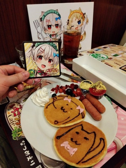 本日いちごうららかCafe終了しました!!来てくださったみなさんJAM Akihabaraのみなさん、本当にありがとうございました! 皆さんのツイートでお家にいる間も楽しめたコラボでした! 最終日はひつひまの3人で遊びにきたよ!パンケーキにかわいいメッセージもらた!かわいい! #いちごうららかCafe