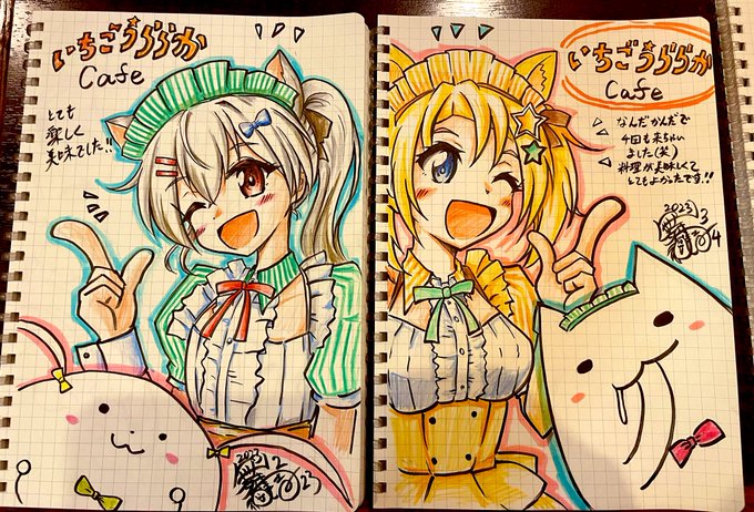 急いで描いたので(固まるかと…!)私のはいろいろ失敗してますが、だんな様のがそりんがかわいい…(*´ω`*) そして実はえりねきの裏(!)に、えれにきも描こうと試みていたなど…もっと失敗してしまいましたが(´∀`;) #いちごうららかCafe #きみもイラストレーター twitter.com/sinjo_pay/stat…