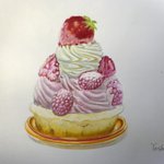 色鉛筆で描いた、 「いちごケーキ」✨ ぼんぼん先生の色鉛筆画教室で描いたお題🎂🍓 明日の講座でもケーキを描きます🍰 #色鉛筆画 #色鉛筆 #いちごケーキ #colorpencil #colorpencildrawing