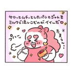 プレイバック★ぽちゃ日和🍟🍩 あたしはジャムパン派 🍟「トーストに塗って食べるのとまた違うのよ💕」 #ぽちゃ日和 #イラスト好きな人と繋がりたい #絵描きさんと繋がりたい #4コマ #絵柄が好みって人にフォローされたい #ジャムパン #菓子パン #いちごジャム #パン