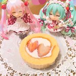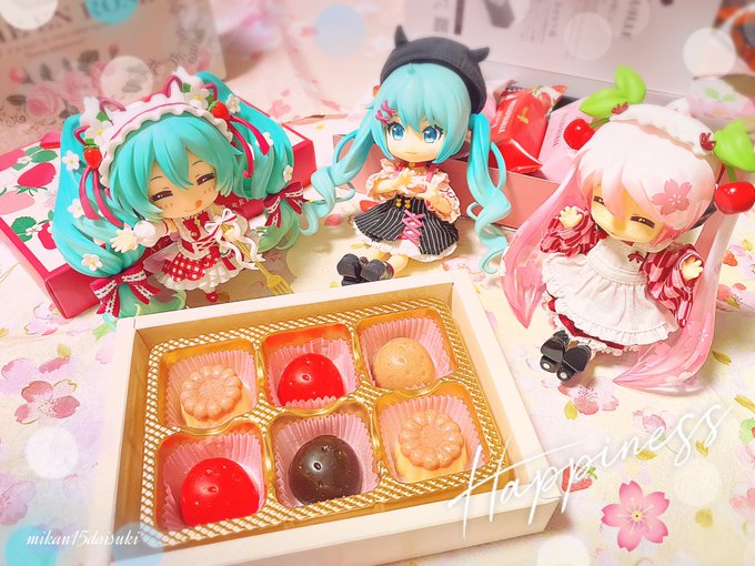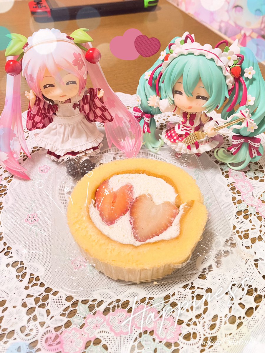 #深夜のねんどろ撮影60分一本勝負 3/20【しあわせ】 甘いスイーツ🍰🍫💕を食べる時は、みんな笑顔になる(*ˊᵕˋ*)💕 可愛い💓美味しい食べものは元気の源(*´ω`*)♡ #ねんどろいどどーる #桜ミク #いちごミク