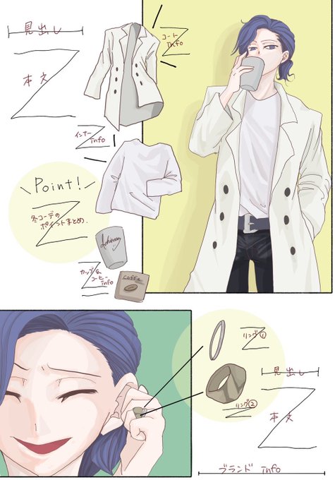 11月課題: ファッション誌の1ページ ジェンダーレス的な 妄想のファッション誌。 #いちさんの定期課題 #イラスト #アドビフレスコ #創拡 #絵師さんと繋がりたい #일러스트 #illustration #絵描きさんと繋がりたい