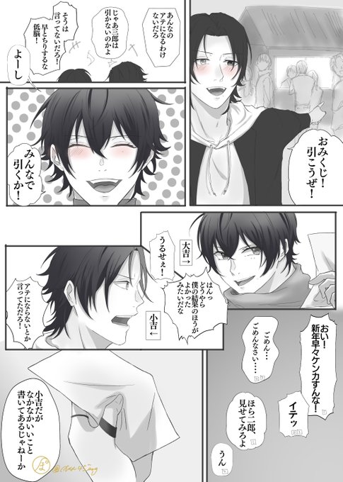 いちじろ / 1️⃣2️⃣ #いちじろワンドロ #いちじろワンドロ延長戦 第74回お題『おみくじ』 (@12_1h_drwr ) 🗻田家はお詣り全員で行かないわけないって思ったので3️⃣が出てきます