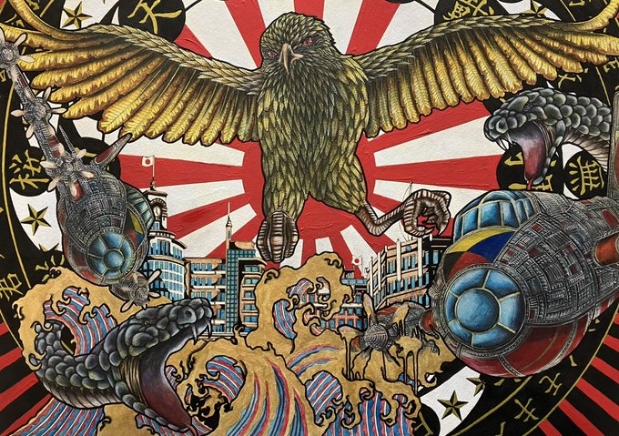 完成しました🎌✨✨ 金鵄の背後で輝く旭日は光を放ち戰を勝利に導く。 日本の未来は明るい!!明るくするのは今を生きる僕達だと信じて制作をしました!!!✨✨✨ #旭日旗 #日本を取り戻す #いつか超つよつよ作家になるので今のうちに推しませんか