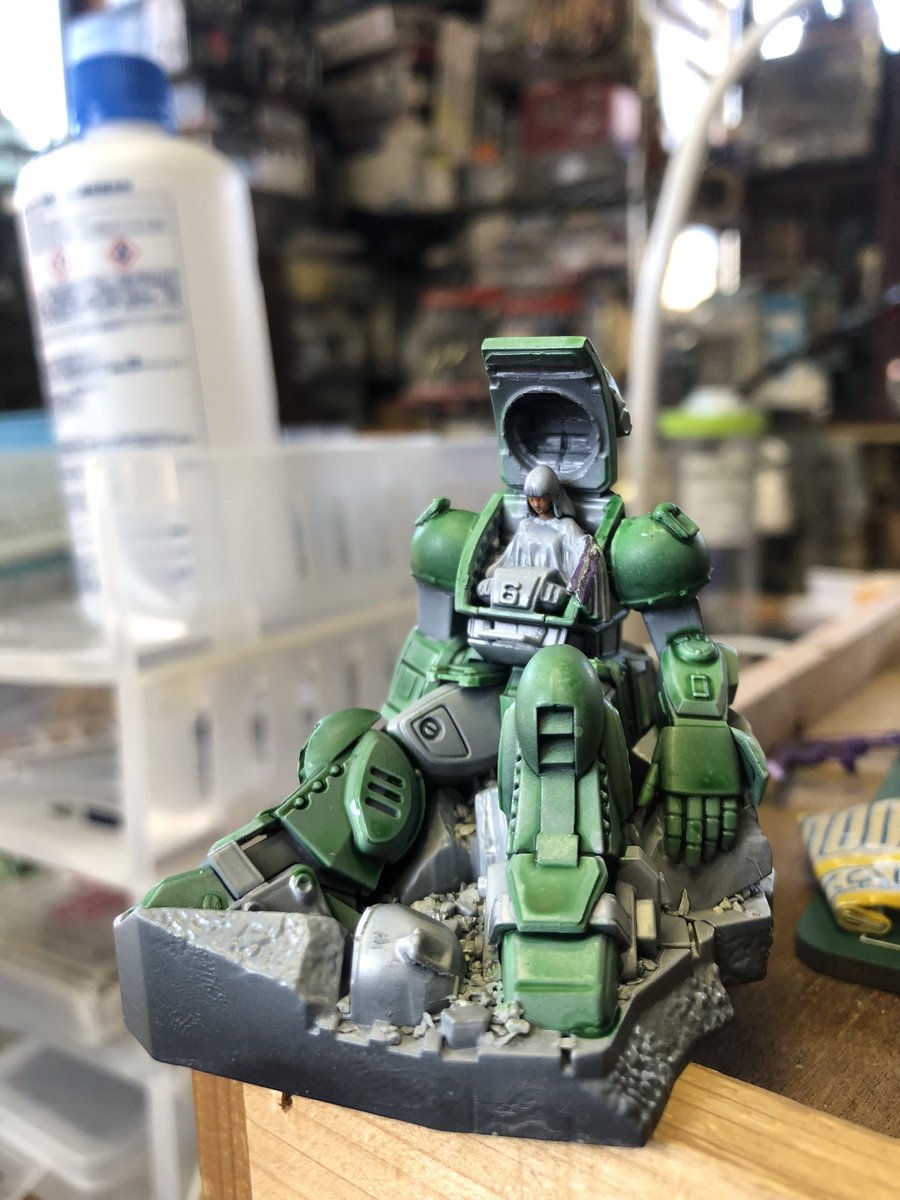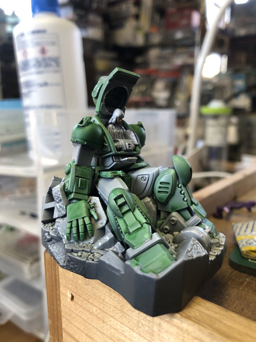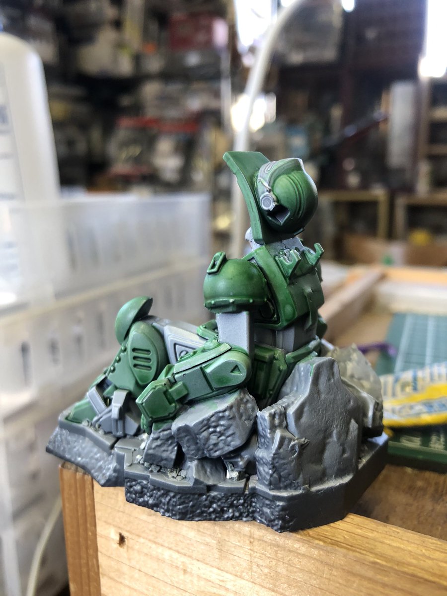 #WolfpackDesign #ソン・ウォニル と #マックスファクトリー の #いつもあなたが を同時に下塗りしました。ジャーマングレー。下塗りはいつもこの色。慣れてるからだけど、エアブラシの洗浄も楽です、この色。ボトムズは白をかけます。潜水艦は、赤系にした黒を上塗りします。#ガンプラジオ