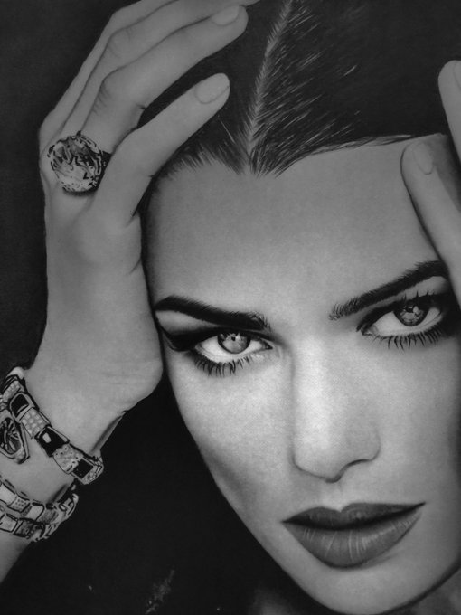 #バルバラ・パルヴィン ファッションモデル 枝川真理先生に鉛筆画を習って 早や4年、絵心なんて全くなかったのに今は最高の時間を過ごす事ができています。 #鉛筆画 #枝川真理 #鉛筆画教室 #pencilart #Pencildrawing #BarbaraPalvin #RTお返しお休み #いつもありがとうございます
