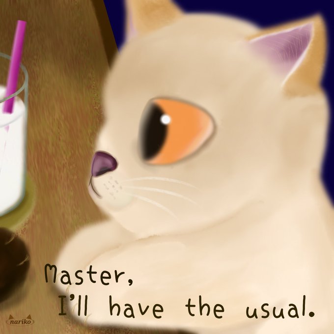 「マスター、いつもの🥃」マスター早っ🤭💕 🐈POP CAT モバイルイラスト🐈 #catillust #ネコ #ねこ #cat #ねこの絵 #イラスト #Illust #ilovecats #猫絵 #ibisPaint #いつもの #ミルクバー #とりあえず言ってみたい