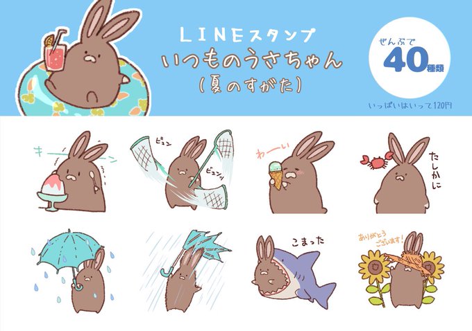 【おしらせ】うさぎのうさちゃんLINEスタンプ3弾できました 今回は夏仕様です!!可愛いので是非☀️ ▼いつものうさちゃん(夏のすがた) line.me/S/sticker/2354… #LINEスタンプ #いつものうさちゃん
