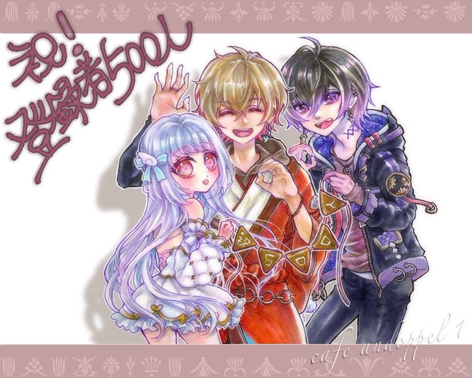 スケブ描かせていただきました(*˘︶˘*).。.:*♡ 喫茶あんどっぺる1号店の夜百すがら様 、天使ここね様、椛屋いと様(*˘︶˘*).。.:*♡ 3人一緒に楽しく描かせていただきました、ありがとうございました(*˘︶˘*).。.:*♡ #夜百絵巻 #えんじぇるはあーと #いとりえ