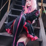 #いにしえコスモスナップ 【作品名】 ギルティギア 【キャラクター】 イノ 【ポイント】 格闘ゲームなので全身入れての構図などをカメラさんがこだわってくださいました。衣装もテカリ感とか欲しくてレザーを選んでます。