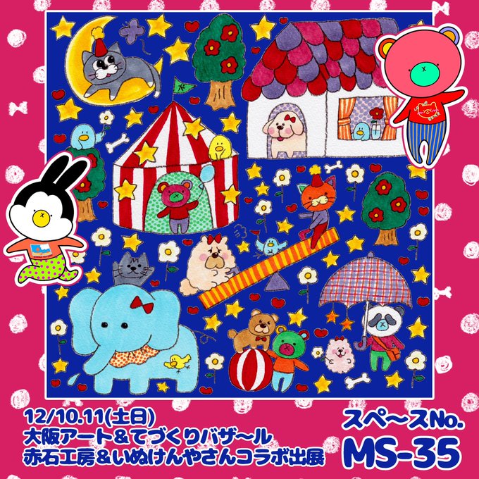 先程アップしたのをちょっと訂正したく…削除させて頂きました💦すいません💦 現在開催中! 遅れての参戦ですが… #ドンランドとりびゅーと 12.25まで 12:00~19:00 火水木は休み #いぬけんやさん @inu_ken_ 中島賢大さん(@kyo_you330)のドンランドのキャラクターを描かせて頂きました! #拡散希望
