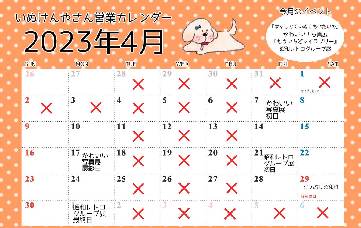 📸【4月イベント】📸 いぬけんやさんの写真展🐶 #まるしかくいぬくちべたいの テーマは『かわいい』 何が可愛いかは人それぞれ🤔 みなさんのカワイイ見ーせて🐶🤲 2023.4.7(金) - 4.17(月) 12時-19時 火水木 定休 ※3/28〜4/6臨時休業 at #いぬけんやさん 大阪市阿倍野区阪南町1-38-17