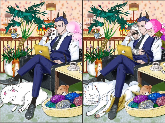 おはようございます😊 昨日は #いぬの日 でしたね🐶(11/11かと思ってた😅) 【ワンワンカフェの11(ワンワン)間違い探し】(修正かこ絵) 犬もお茶しに来る不思議なカフェ😁 左右で間違いが11個あります~ 探してみてね👀🔎 良い一日を☕️共に #ART_RT #絵描きさんと繋がりたい
