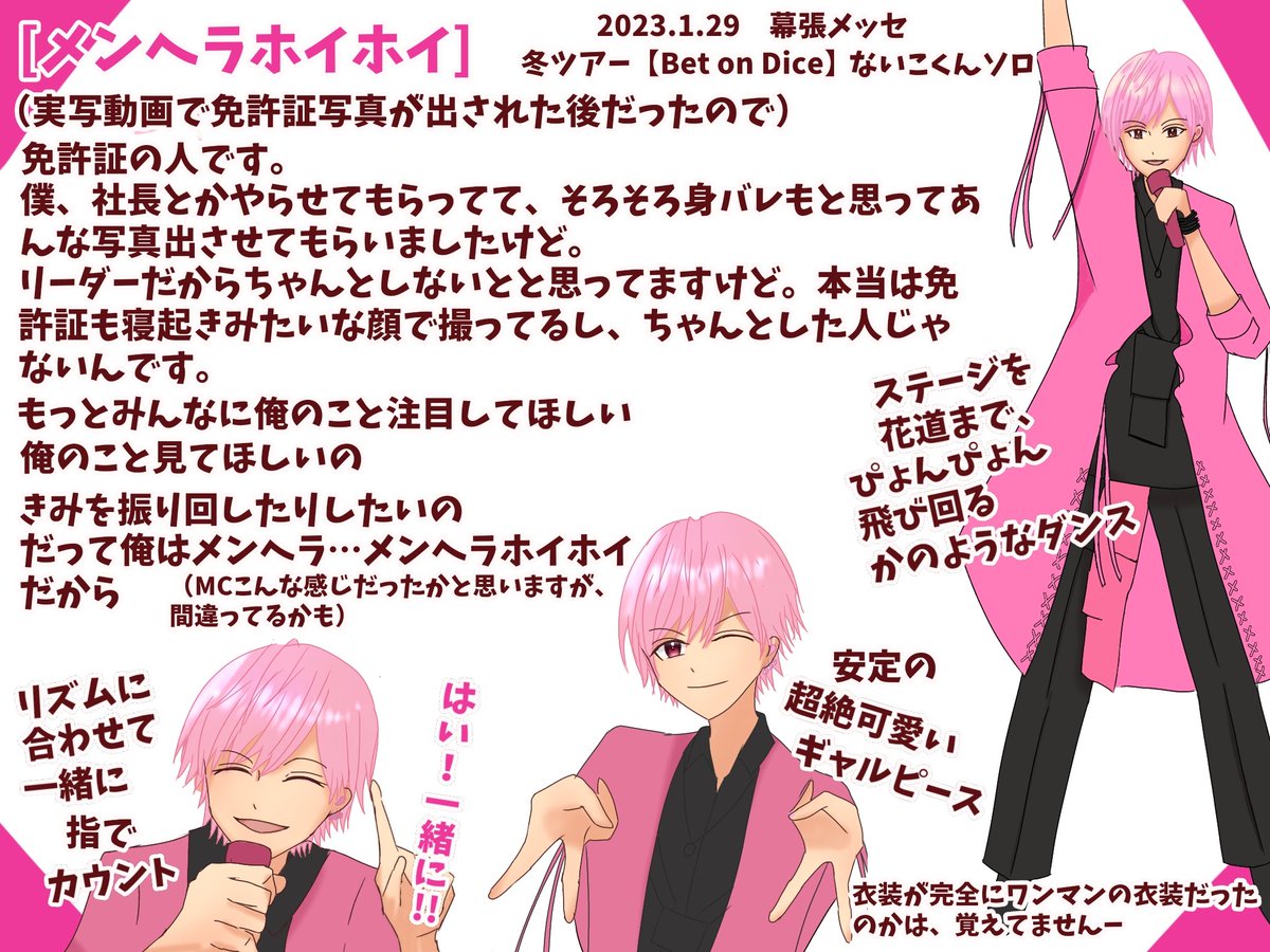 【Bet on Dice Final】 1/29 ないこくん[メンヘラホイホイ] まさか幕張の大きなステージで、小悪魔顔で楽しそうに歌って踊るないくんが見れるなんて、幸せすぎました!!! 色々曖昧ですがどうしても残しておきたくて、過去絵リメイク失礼🙏 #いれいすライブレポ #いれいすあーと #聞いてよないこくん