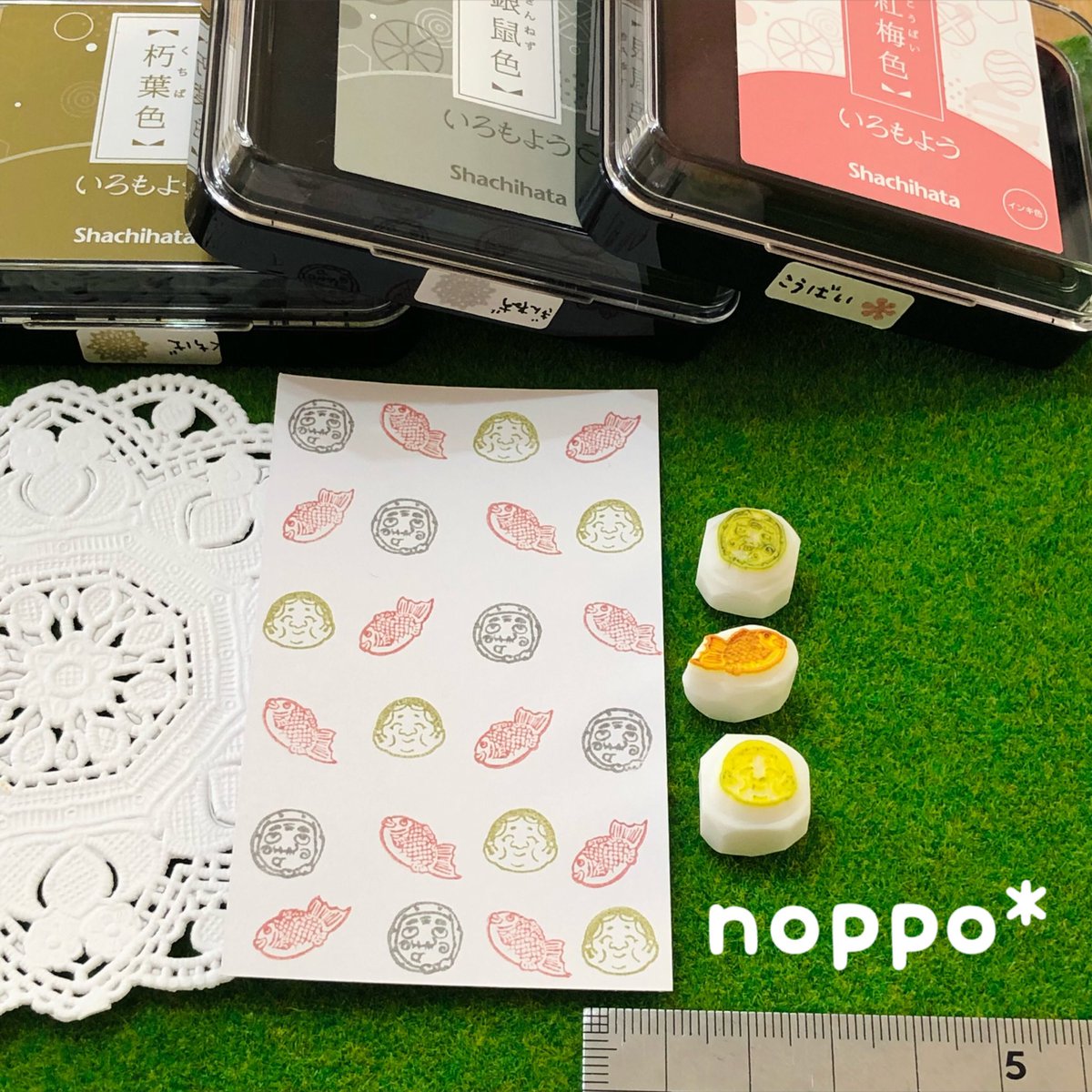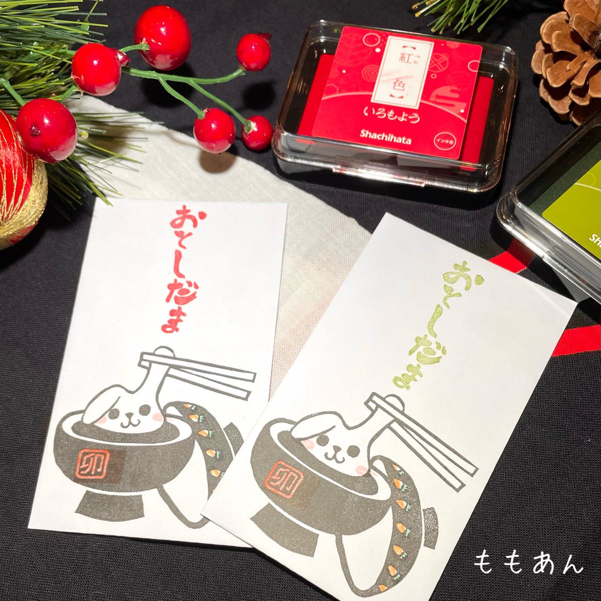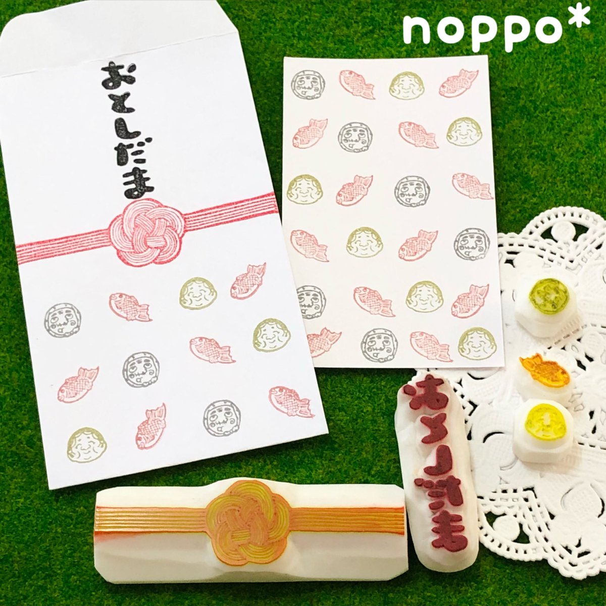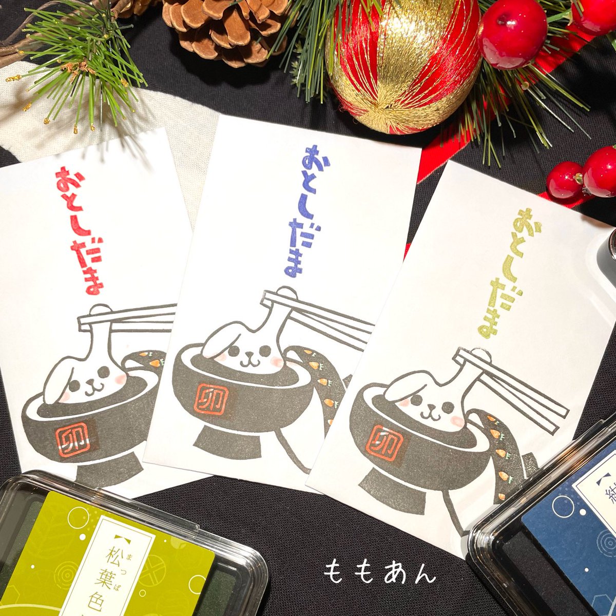 お年玉袋用のはんこ 3種作りました😆 いろもようでカラフルに押しました♪ お正月にぴったりの色ばかりで 楽しーい❤️ #消しゴムはんこ #いろもよう #私の絵柄が好みって人にフォローされたい