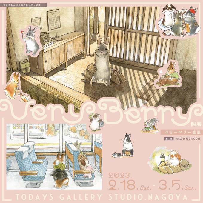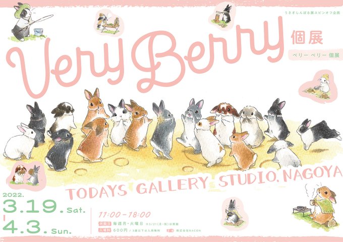 うさぎしんぼる展スピンオフ企画 🐰🌸VeryBerry個展2023🌸🐰 🥳🎉‼️‼️開催決定‼️‼️ 2月18 日(土) 〜 3月5 日(日) 休館 月・火・水 愛知県名古屋市中区 新栄1丁目17-12 TODAYS GALLERY STUDIO.NAGOYA 《企画や在廊日はこちら》 tgs.jp.net/event/usagisym… #うさぎしんぼる展 #VeryBerry個展