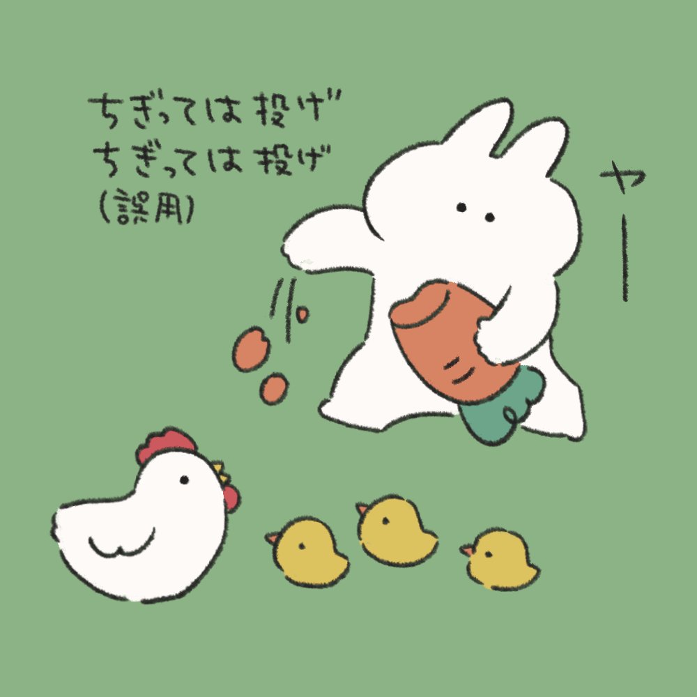 私の好きな言葉です🤗笑 リズムがいいのと ちぎるって表現が特にいい イラストは、敵を倒すのではなくにんじんをほんとにちぎって投げるうさぎです #イラスト #ゆるいイラスト #うさぎときどきにんじん