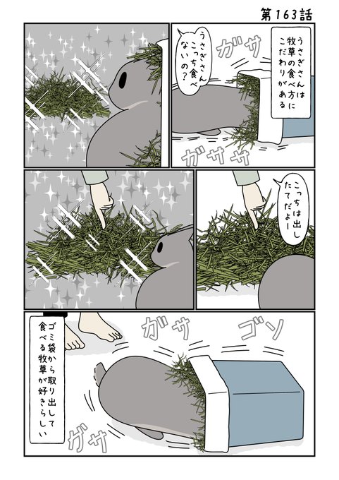 うさぎさんは生きてるだけで尊いのでその感謝の気持ちを込めてちょっとお高い牧草をプレゼントしてみました🥰 最初はウキウキで駆け寄ってくれたのですが、実食すると微妙な反応をされてしまいました🤣 美味しくないわけではないらしく時々食べてはくれます🤔 #うさぎのいる暮らし #うさぎのいる生活